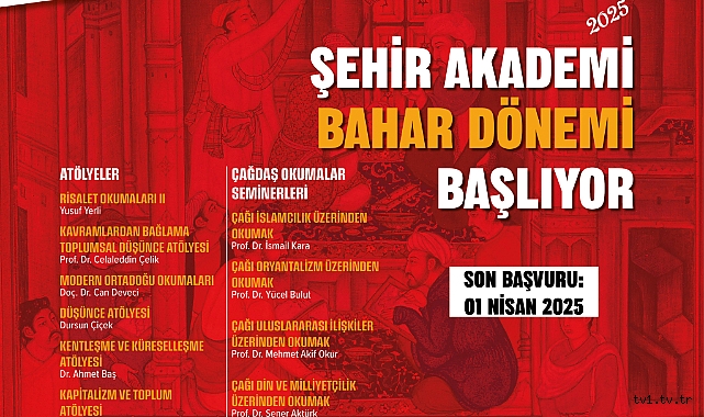 Kayseri Büyükşehir Belediyesi bünyesinde şehrin düşünce ve fikir hayatına katkı sağlamak amacıyla faaliyet gösteren BÜSAM tarafından düzenlenecek Şehir Akademi 2025 Bahar Dönemi kayıtları devam ediyor.