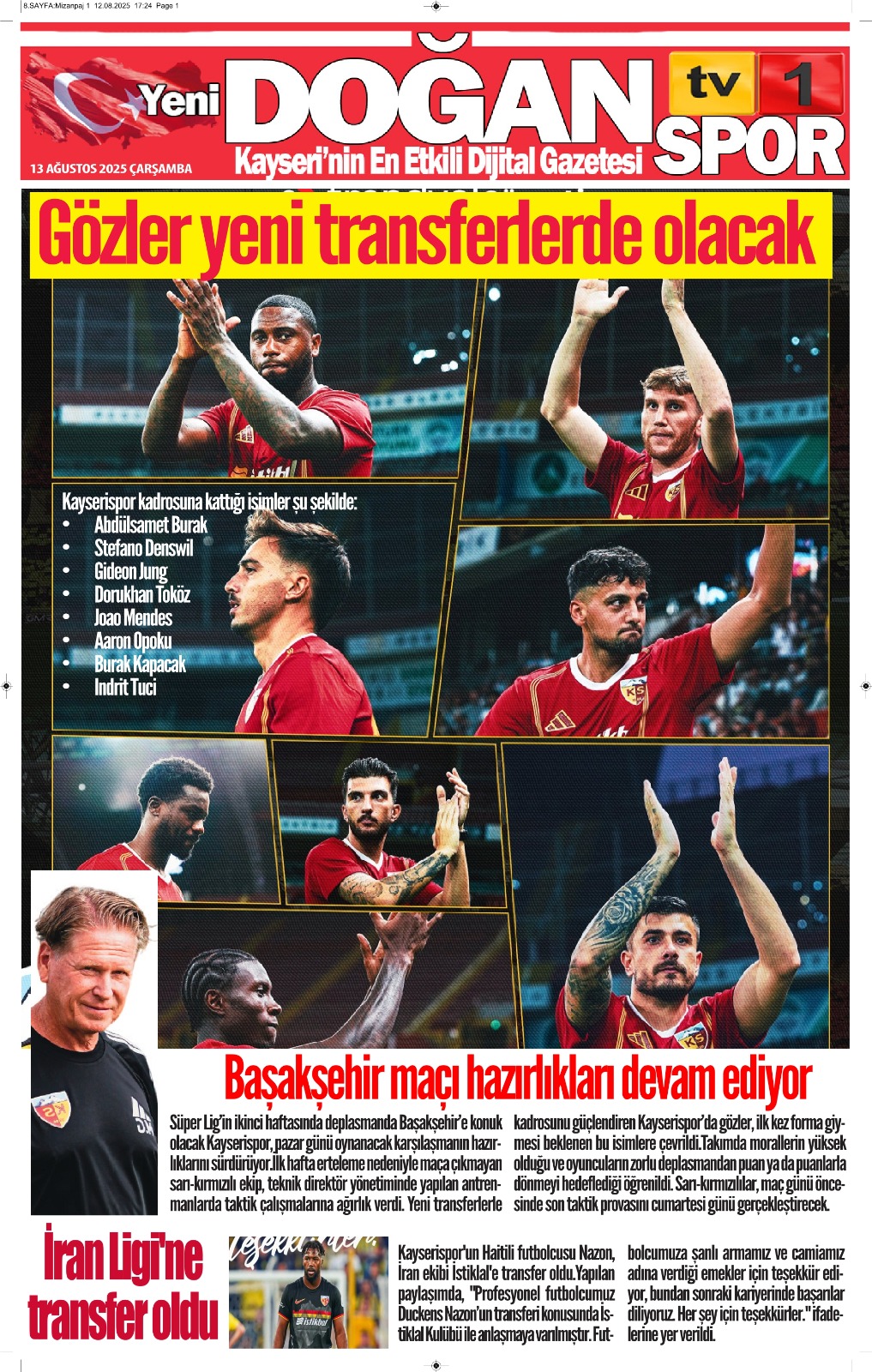 13 AĞUSTOS TARİHLİ GAZETEMİZ
