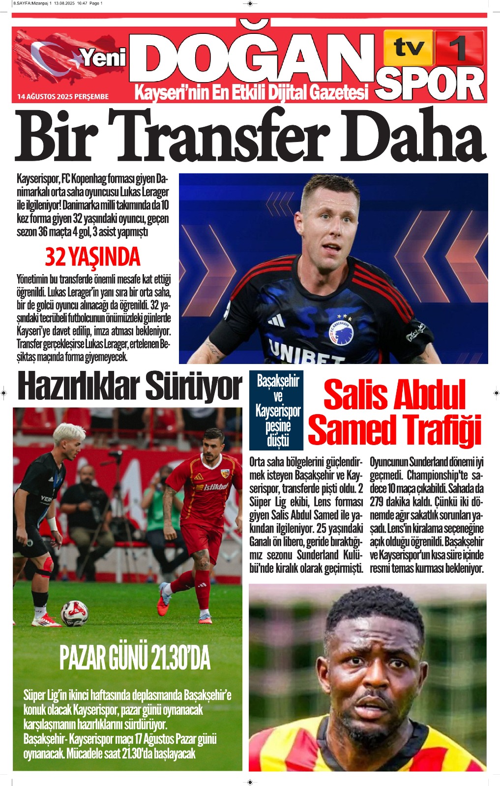 30 AĞUSTOS 2025 TARİHLİ GAZETEMİZ