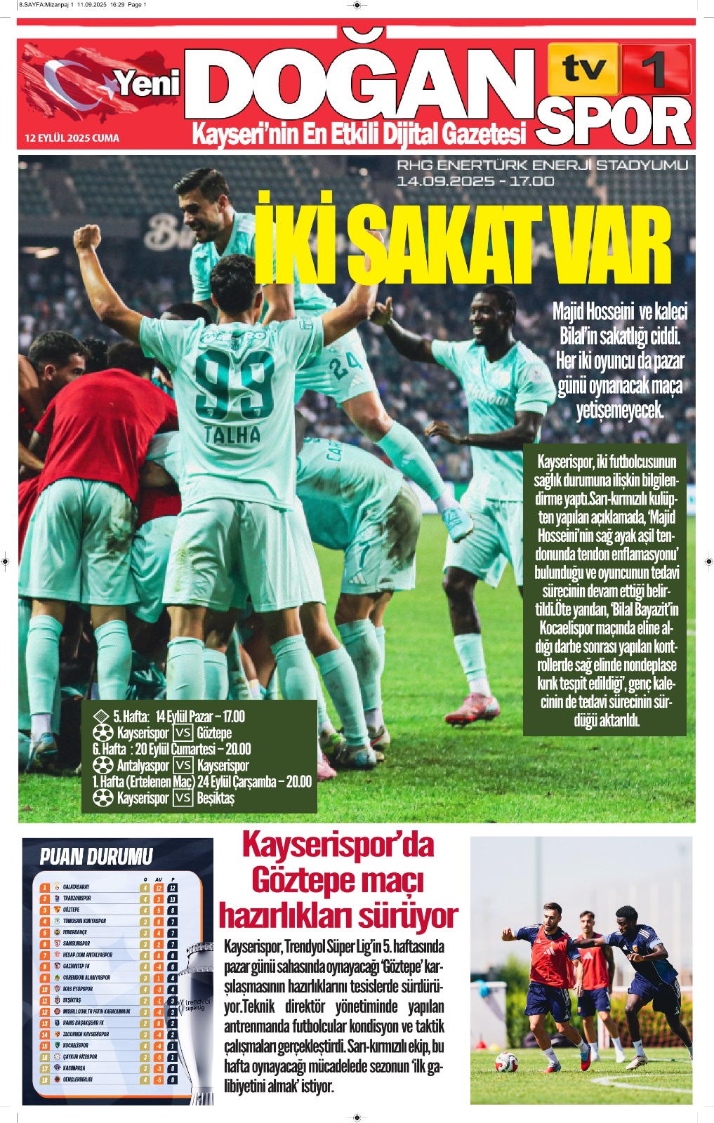 11 EYLÜL 2025 TARİHLİ GAZETEMİZ