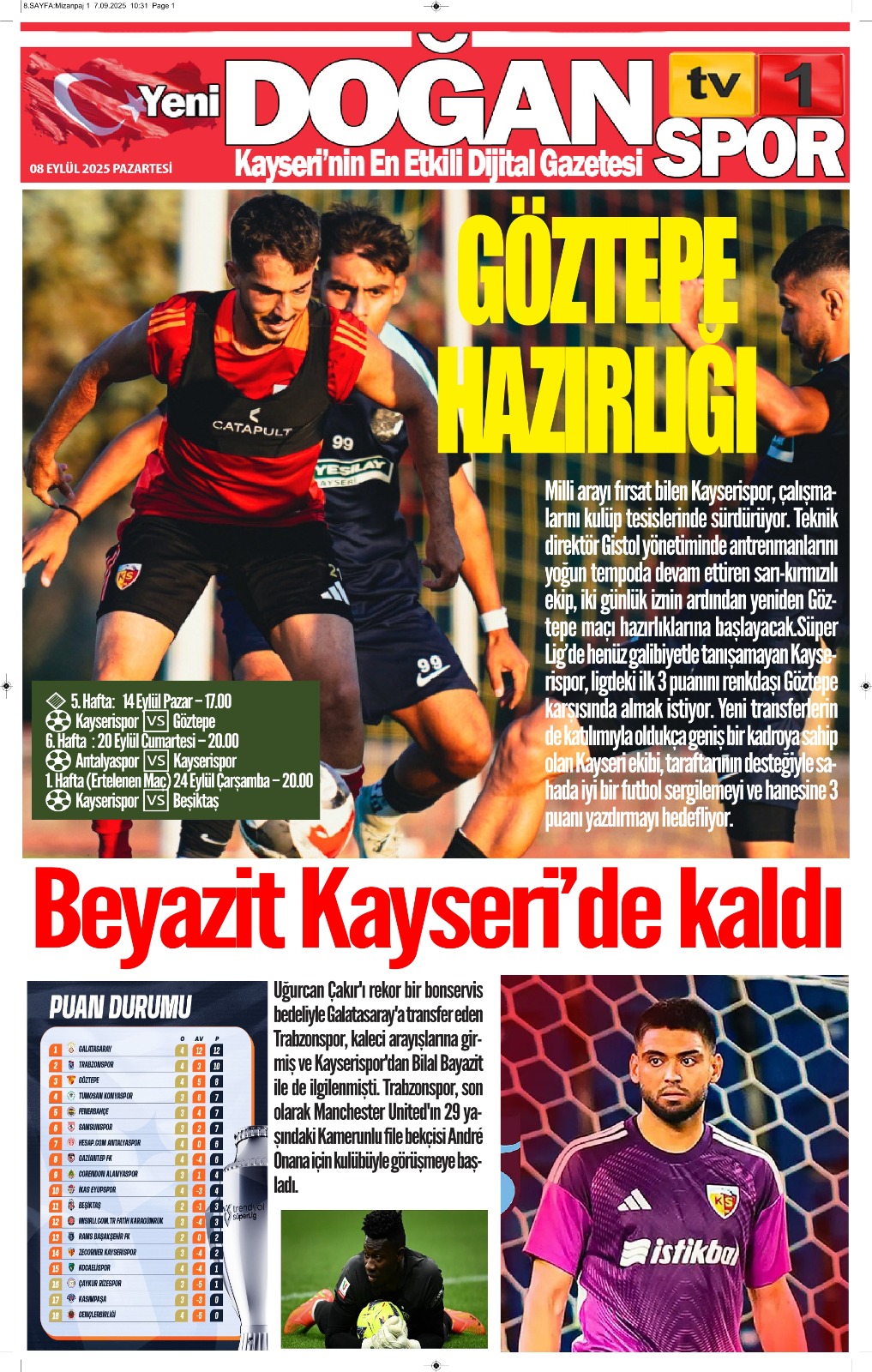 8 EYLÜL TARİHLİ GAZETEMİZ