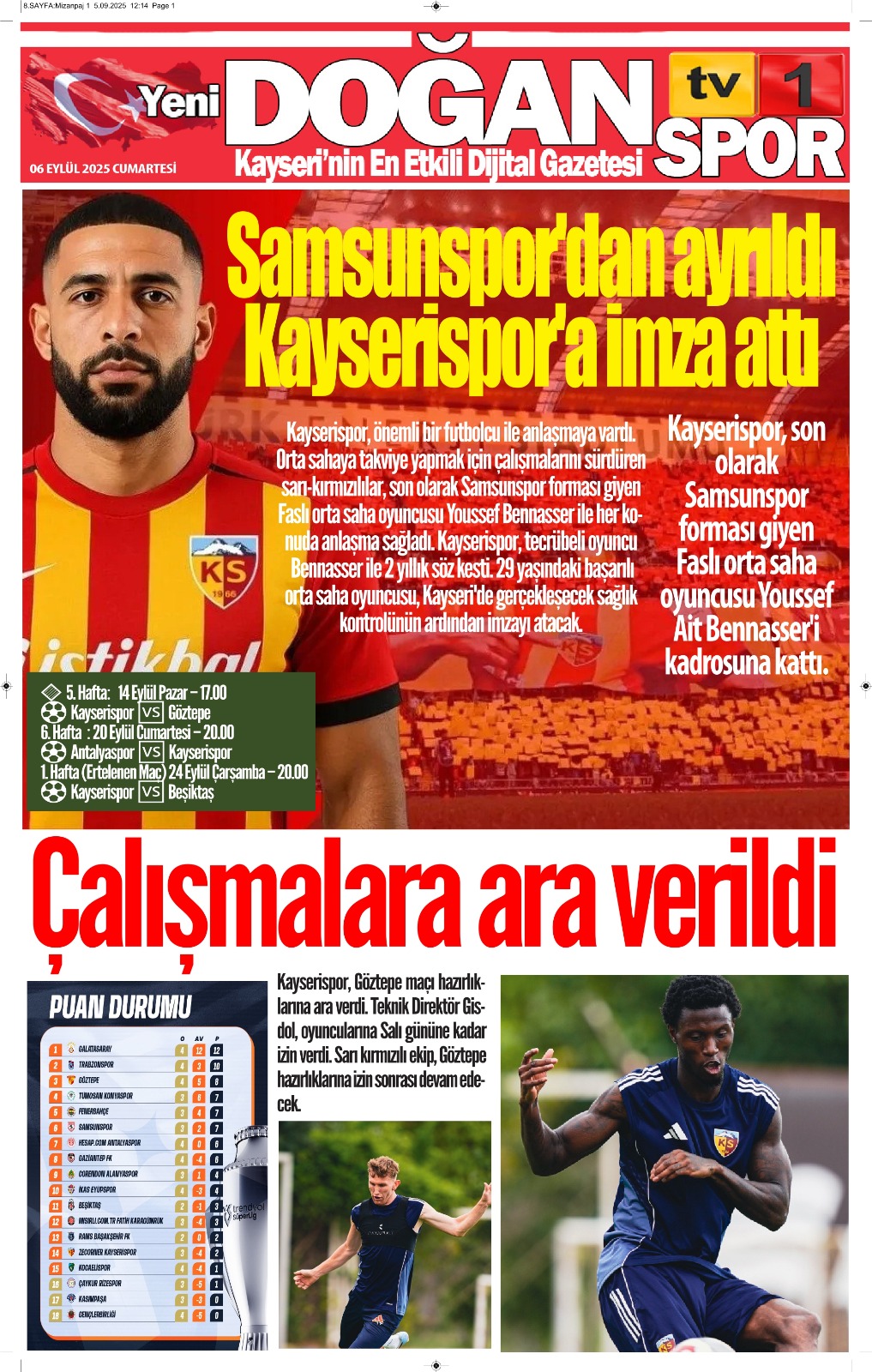 06 EYLÜL TARİHLİ GAZETİMİZ
